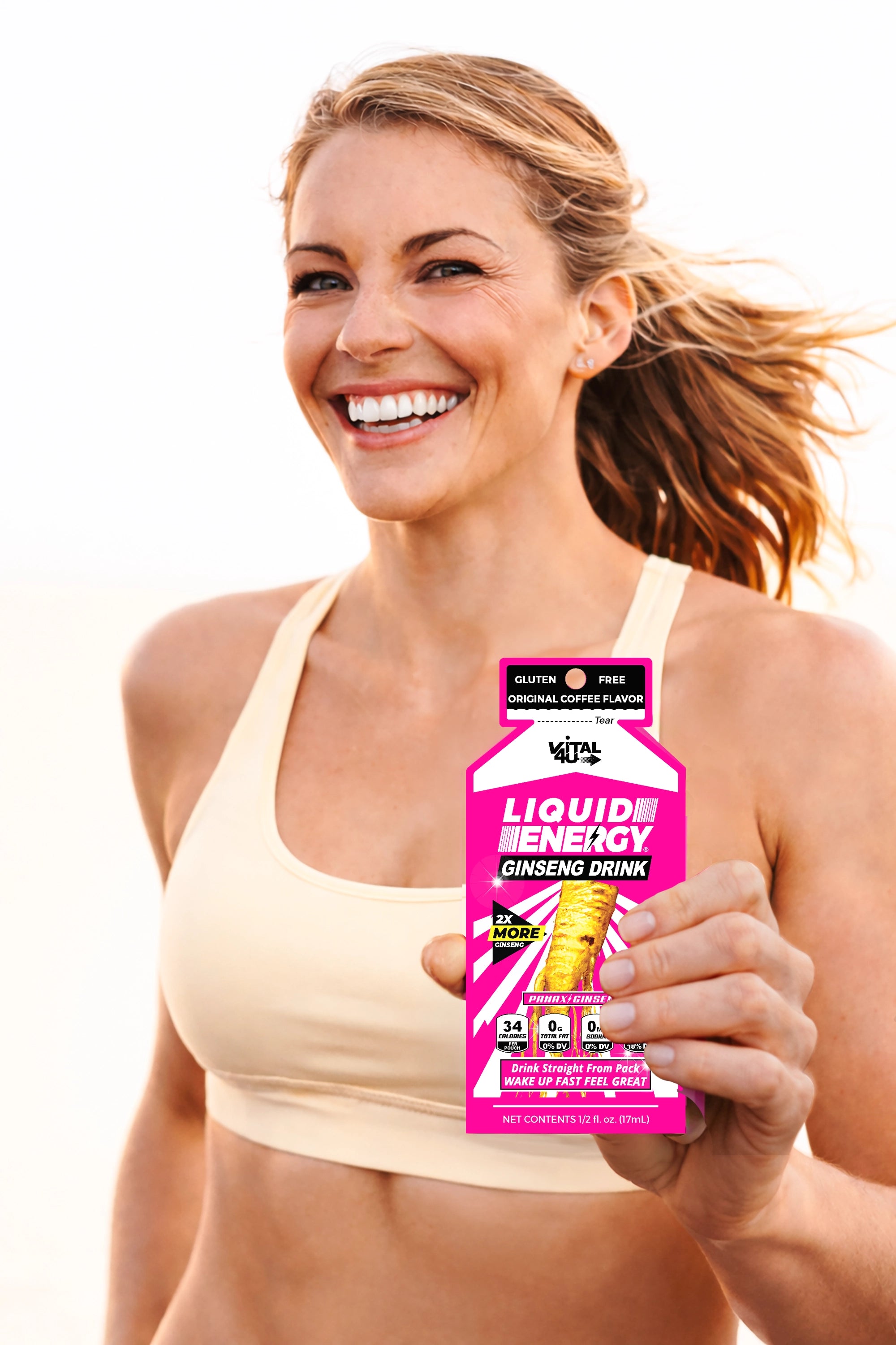 Only 34 calories per pouch makes Liquid Energy the perfect afternoon shot to wake you and keep you going. Try it today and use it forever.